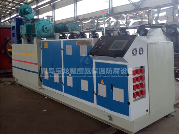 该机组主要用于大口径PE保温管的生产,产品主要用于供暖管道的外层,中间层为聚氨酯发泡层,内层为钢管,也可生产供水管、排水管等。
